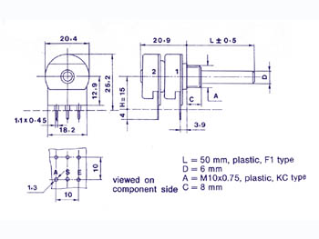 Potentiomètres rotatifs de 20mm avec piste de carbone pour applications CI. Boîtier métallique et axe en plastique (Ø= 6mm). Interrupteur unipolaire optionnel (1A - 24VCC / 0.3A - 250VCA).