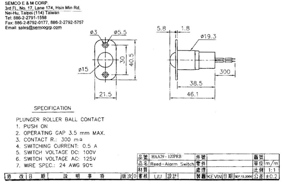 | Description: | Spécifications - contact reed "à bille"