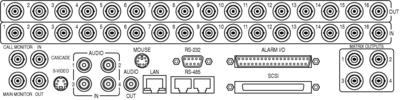Sorties vidéo: 16 x BNC, 1 Vcc/75 Ω , 1 x BNC, 1 Vcc/75 Ω, moniteur principal , 1 x moniteur S-VHS, moniteur principal , 1 x BNC, 1 Vcc/75 Ω, moniteur Call , 4 x BNC,1 Vcc/75 Ω, moniteur matrice
